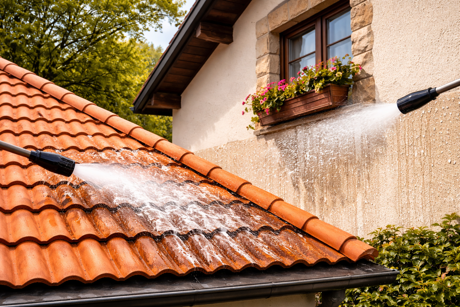 Le traitement hydrofuge protège durablement vos surfaces extérieures en limitant la pénétration de l’eau dans les matériaux. Il réduit l’humidité, ralentit l’apparition des mousses et aide à prévenir les infiltrations. Après préparation du support, l’hydrofuge est appliqué de façon uniforme sur toitures et façades afin de renforcer leur résistance et prolonger leur durée de vie.